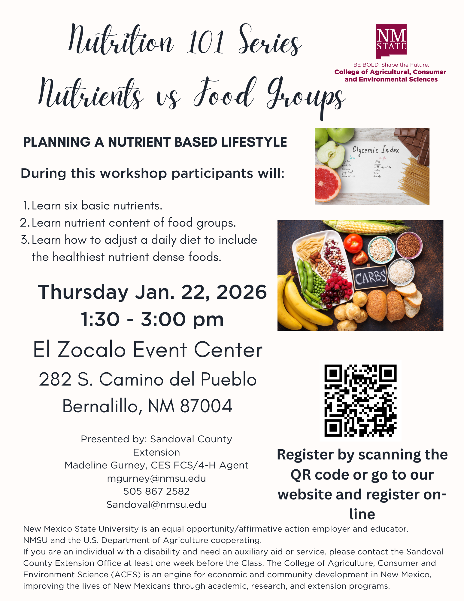 • April 9: Nutrition 101: Micronutrients at El Zocalo in Bernalillo