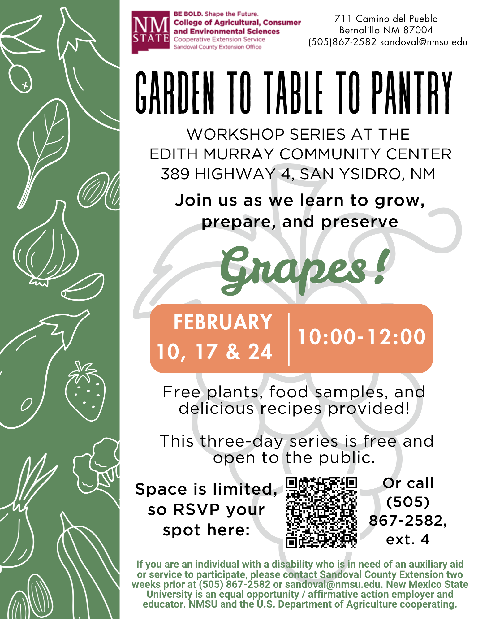 See the Extension Calendar for a complete list of events in and near Sandoval County!